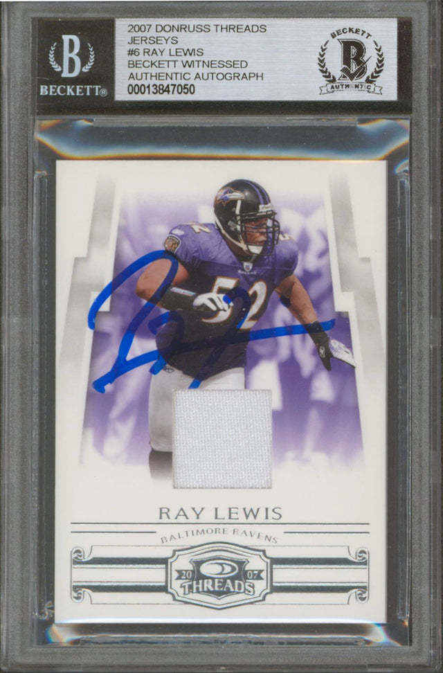 Ravens Ray Lewis Signed 2007 Donruss Threads Jerseys #6 24/250 Card BAS Slabbed
