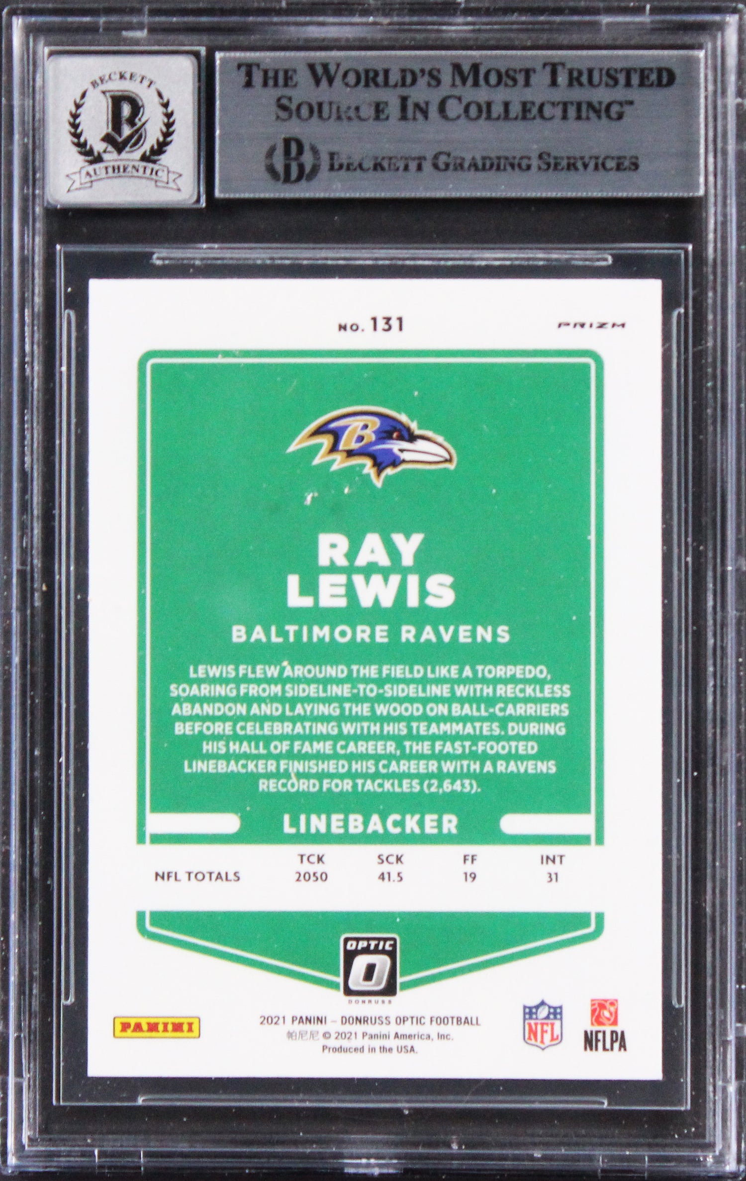 Ravens Ray Lewis Signed 2021 Donruss Optic Holo #131 Card Auto 10! BAS Slabbed