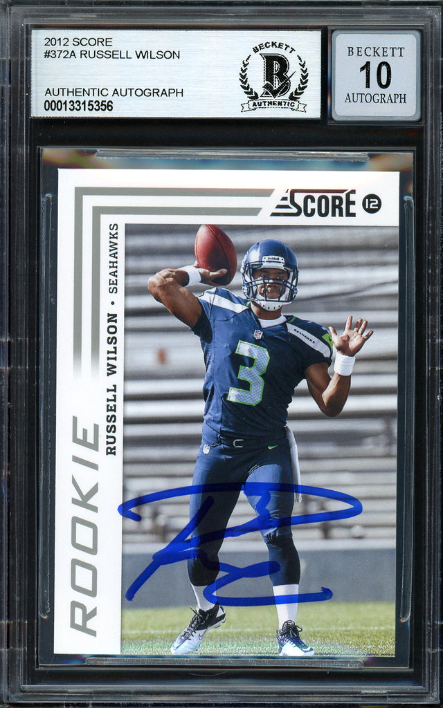 Russell Wilson Autographed 2012 Score Rookie Card #372 Seattle Seahawks Auto Grade Gem Mint 10 Beckett BAS #13315356