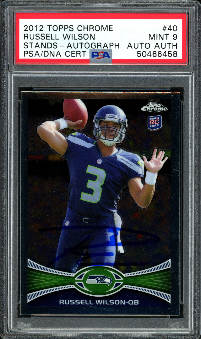 Russell Wilson Autographed 2012 Topps Chrome Rookie Card #40 Seattle Seahawks Card Grade Mint 9 (Smear) PSA/DNA #50466458