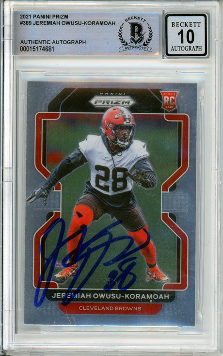2020 Panini Prizm #389 Jeremiah Owusu-Koramoah RC Cleavland Browns BGS Auto 10