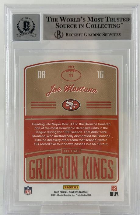 2016 Donruss All Time Gridiron Kings #11 Joe Montana Auto 49ers BGS Autograph 10