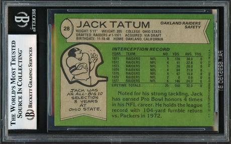 Jack Tatum Autographed 1978 Topps Card #28 Oakland Raiders Beckett BAS #17606538