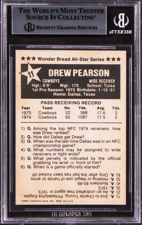 Cowboys Drew Pearson "HOF 21" Signed 1975 Wonder Bread #11 Card BAS Slabbed 2