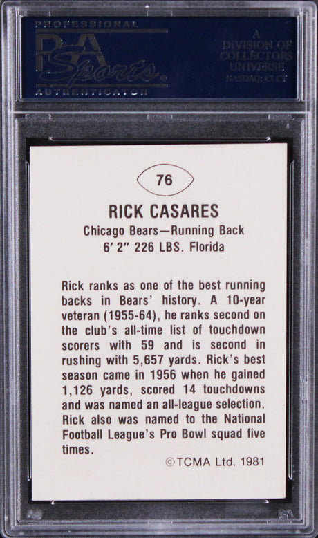 Very low stock (1 unit)$199Unit price /Unavailable Bears Rick Casares Authentic Signed 1981TCMA Greats #76 Card PSA/DNA Slabbed