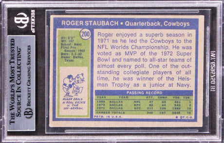 Cowboys Roger Staubach "HOF 85" Signed 1972 Topps #200 RC Card BAS Slabbed 1