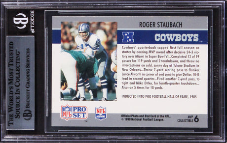 Cowboys Roger Staubach Signed 1990 Pro Set Super Bowl MVP'S #6 Card BAS Slabbed