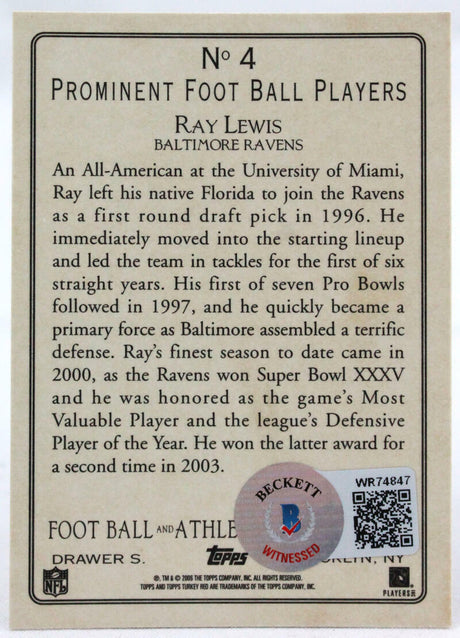 2006 Topps Turkey Red #4 Ray Lewis Baltimore Ravens Autograph Beckett Witness