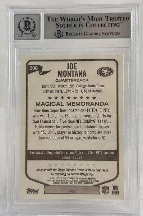 2013 Topps Magic #206 Joe Montana Auto San Francisco 49ers BGS Autograph 10