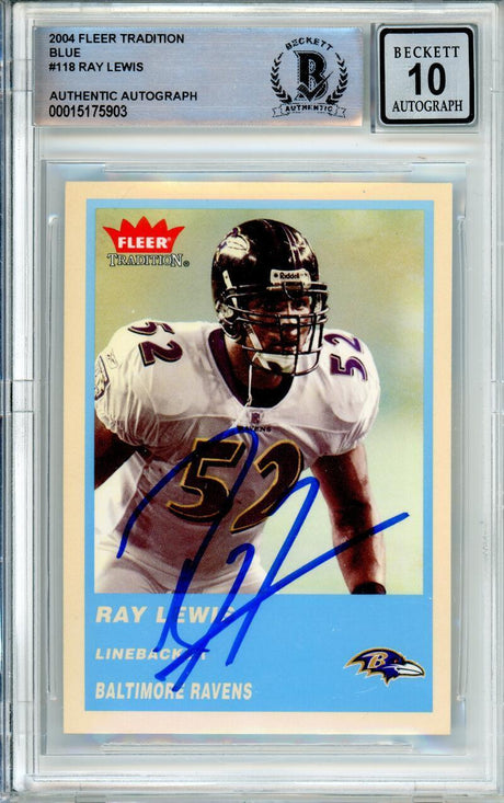 2004 Fleer Tradition Blue #118 Ray Lewis Baltimore Ravens BGS Autograph 10