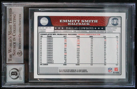 2008 Topps Turn Back The Clock #34 Emmitt Smith Auto Cowboys BGS Autograph 10