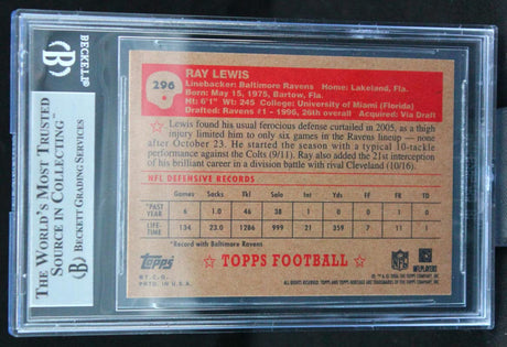 2006 Topps Heritage #296 Ray Lewis Baltimore Ravens BGS Autograph 10