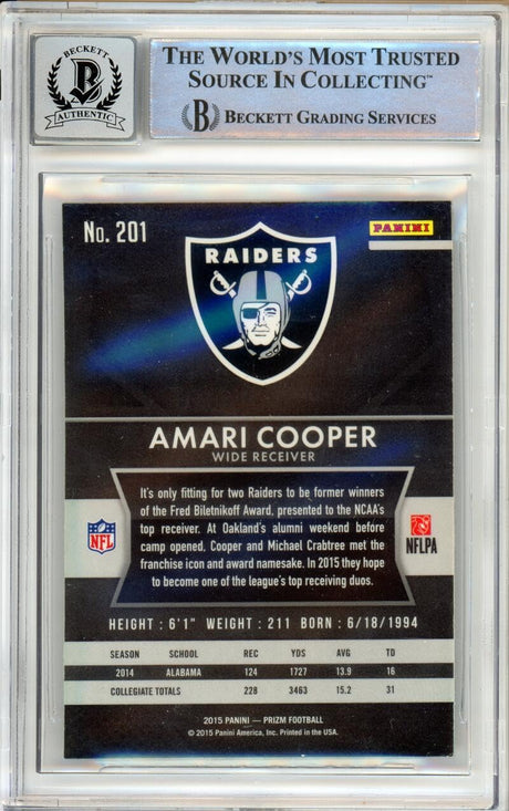 2015 Panini Prizm #201A Amari Cooper RC Raiders BGS Autograph 10