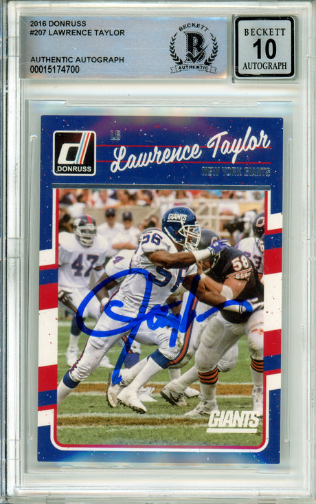 2016 Panini Donruss #207 Lawrence Taylor New York Giants BGS Autograph 10