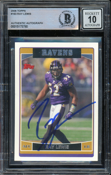 2006 Topps #163 Ray Lewis Baltimore Ravens BGS Autograph 10