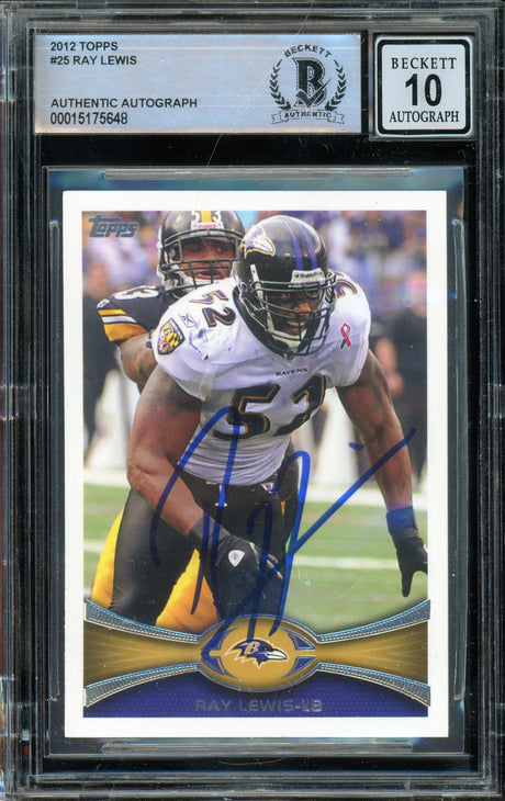 2012 Topps #25 Ray Lewis Baltimore Ravens BGS Autograph 10
