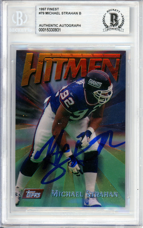 1997 Topps Finest Hitmen #79 Michael Strahan New York Giants BGS Autograph 10