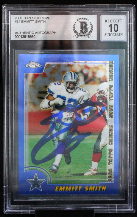 2000 Topps Chrome #34 Emmitt Smith Auto Dallas Cowboys BGS Autograph 10