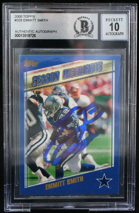 2000 Topps #328 Emmitt Smith Auto Dallas Cowboys BGS Autograph 10