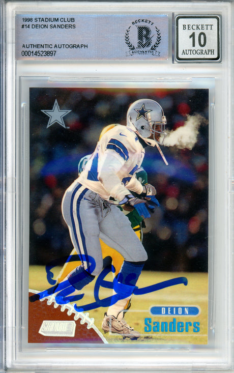 1998 Topps Stadium Club #14 Deion Sanders Dallas Cowboys BGS Autograph 10