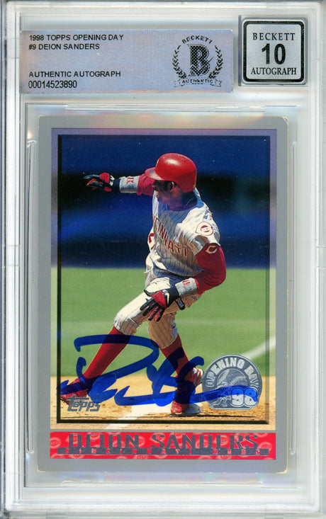 1998 Topps Opening Day #9 Deion Sanders Cincinnati Reds BGS Autograph 10