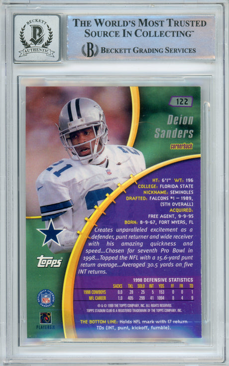 1999 Topps Stadium Club #122 Deion Sanders Dallas Cowboys BGS Autograph 10