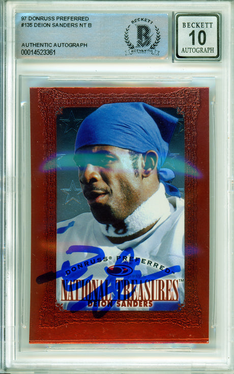 1997 Donruss Preferred National Treasures #135 Deion Sanders Cowboys BGS Auto 10