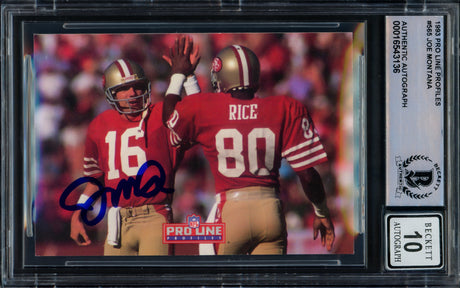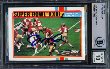 Very low stock (1 unit)$479Unit price /Unavailable Joe Montana Autographed 1989 Topps Card #1 San Francisco 49ers Beckett BAS #16545665