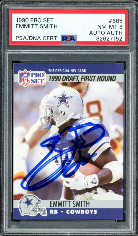 Very low stock (1 unit)$209Unit price /UnavailableEmmitt Smith Autographed 1990 Pro Set Rookie Card #685 Dallas Cowboys PSA 8 PSA/DNA #82627152