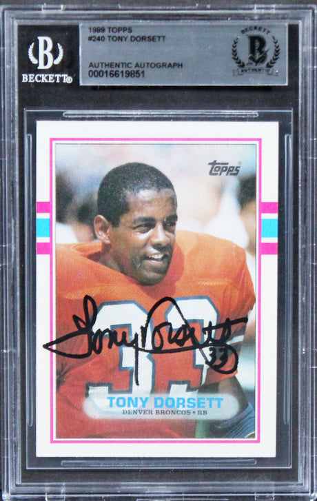 Low stock (3 units)$119Unit price /Unavailable Broncos Tony Dorsett Authentic Signed 1989 Topps #240 Card BAS Slabbed