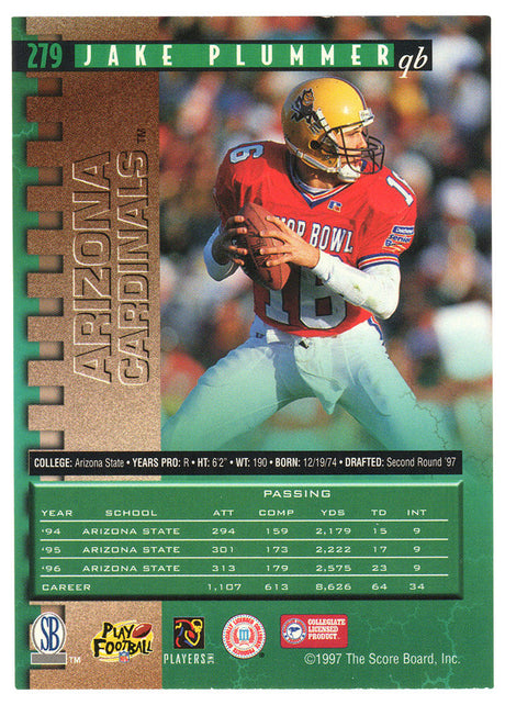 $59Unit price /UnavailableJake Plummer Signed Arizona Cardinals 1997 Pro Line Rookie Football Trading Card #279 w/Snake