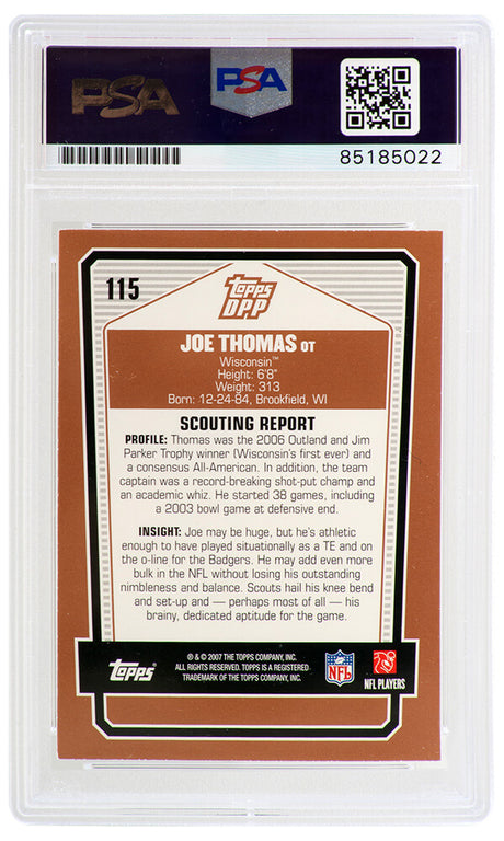 Joe Thomas Signed 2007 Topps DPP Rookie Football Trading Card #115 - (PSA/DNA Encapsulated)