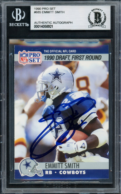 Very low stock (1 unit)$89Unit price /UnavailableEmmitt Smith Autographed 1990 Pro Set Rookie Card #685 Dallas Cowboys Beckett BAS #14058921