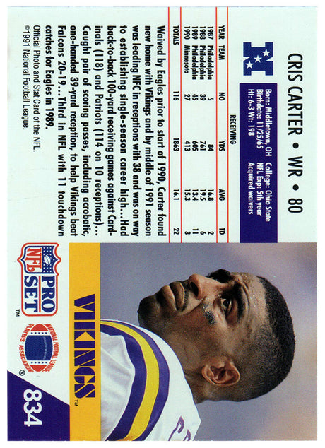 Cris Carter Signed Minnesota Vikings 1991 Pro Set Football Trading Card #834