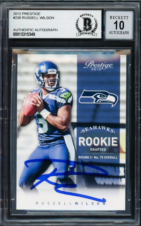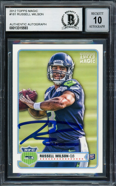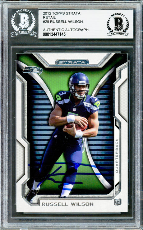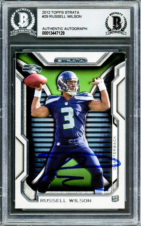 Russell Wilson Autographed 2012 Bowman Rookie Card #116A Seattle Seahawks Beckett BAS Stock #220154