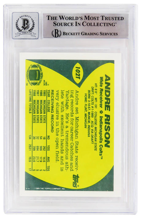 Andre Rison Signed Colts 1989 Topps Rookie Football Trading Card #102T - (Beckett Encapsulated)