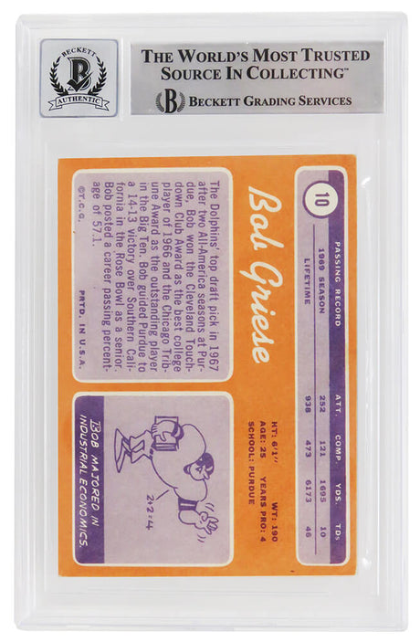 Bob Griese Signed Miami Dolphins 1970 Topps Football Trading Card #10 - (Beckett - Auto Grade 10)