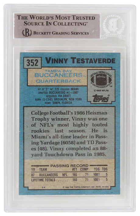 Vinny Testaverde Signed Buccaneers 1988 Topps Rookie Card #352 - (Beckett Encapsulated)