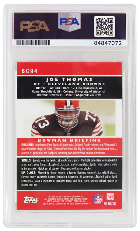 Joe Thomas Signed Cleveland Browns 2007 Bowman Chrome Rookie Card #BC94 (PSA/DNA Encapsulated)