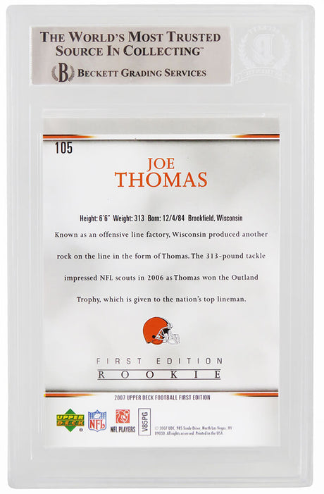 Joe Thomas Signed 2007 Upper Deck First Edition Rookie Football Card #105 - (Beckett Encapsulated)