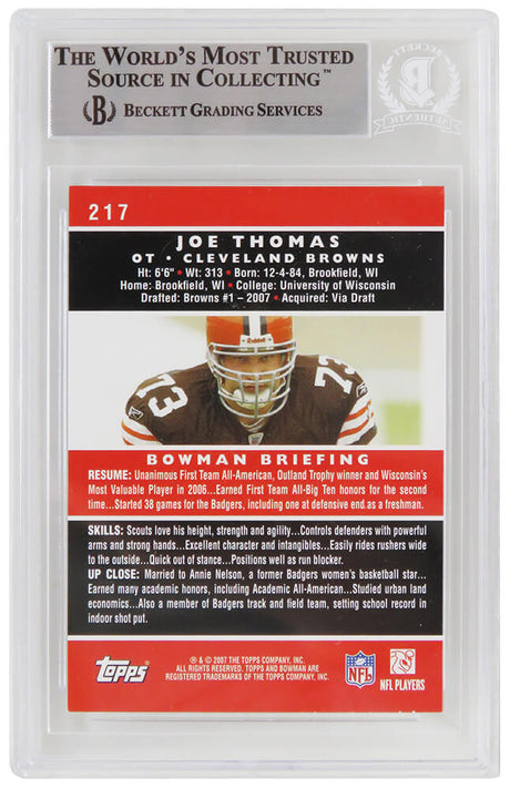 Joe Thomas Signed Cleveland Browns 2007 Bowman Football Rookie Card #217 - (Beckett Encapsulated)