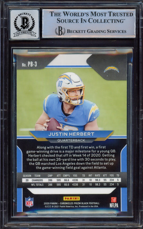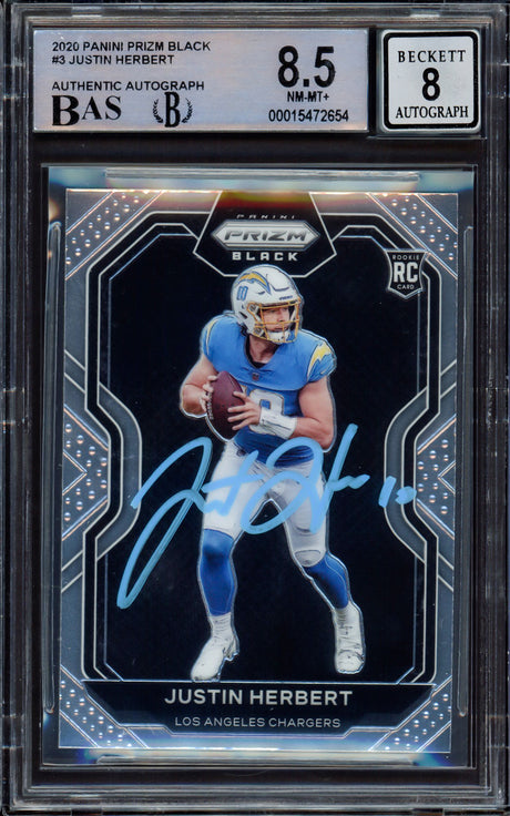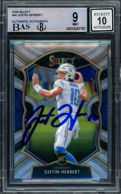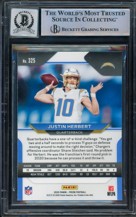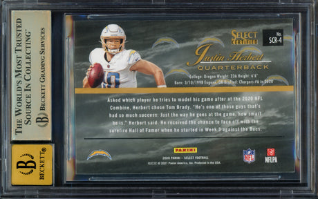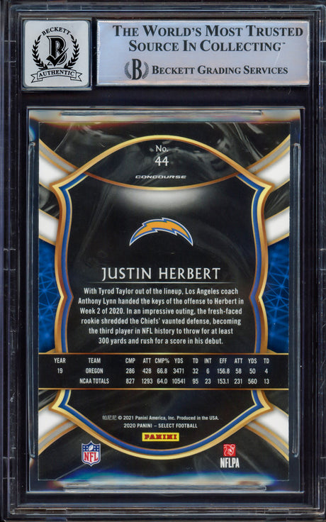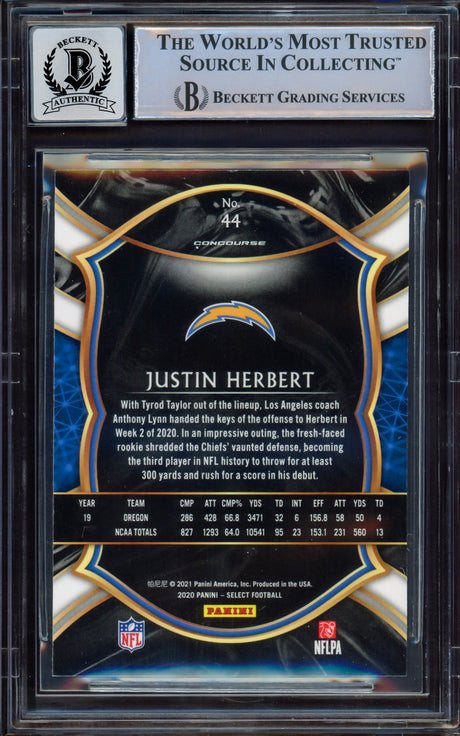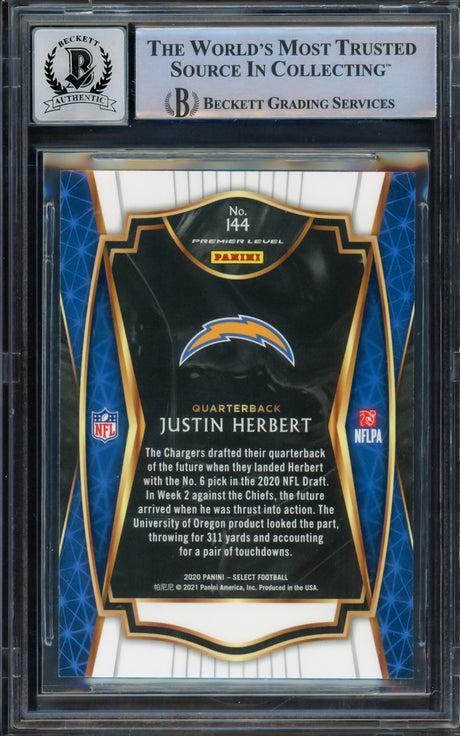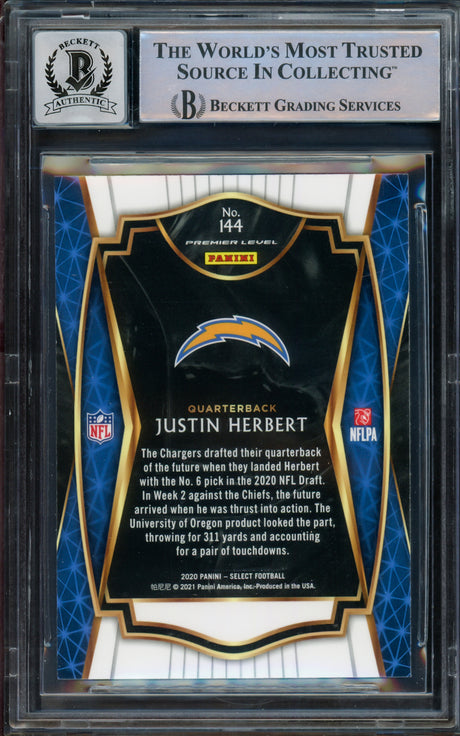 Justin Herbert Autographed 2020 Select Rookie Card #144 Los Angeles Chargers Beckett BAS #15470096
