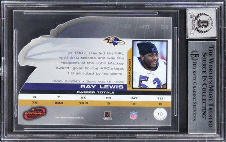 Ravens Ray Lewis Signed 2001 Pacific Prism Atomic #13 Card Auto 10! BAS Slabbed