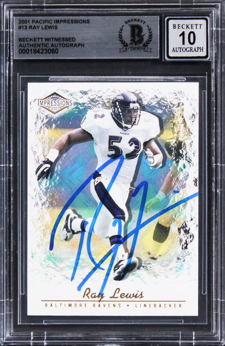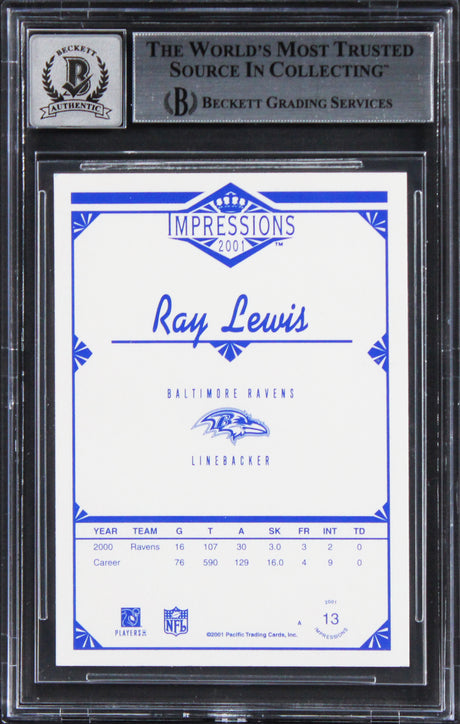 Ravens Ray Lewis Signed 2001 Pacific Impressions #13 Card Auto 10! BAS Slabbed
