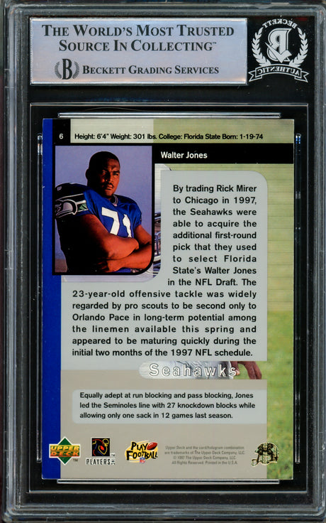 Walter Jones Autographed 1997 Upper Deck SP Rookie Card #6 Seattle Seahawks Beckett BAS #14612534