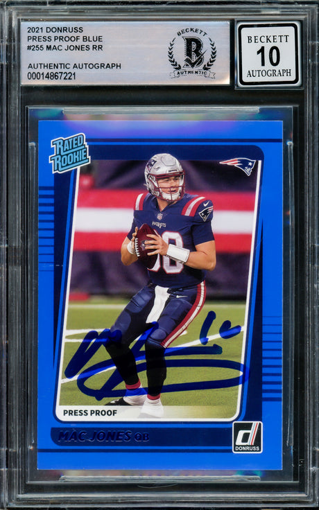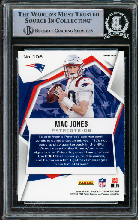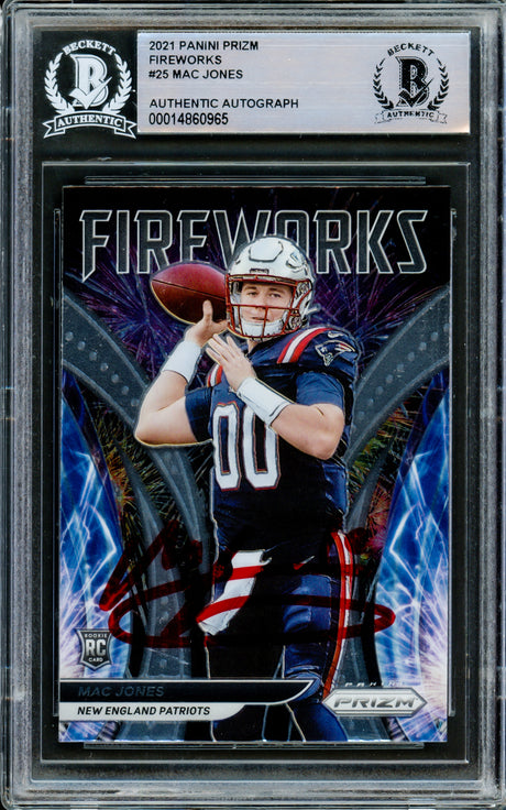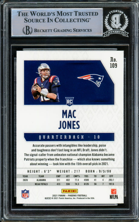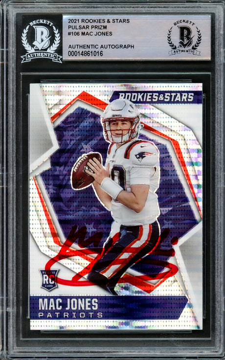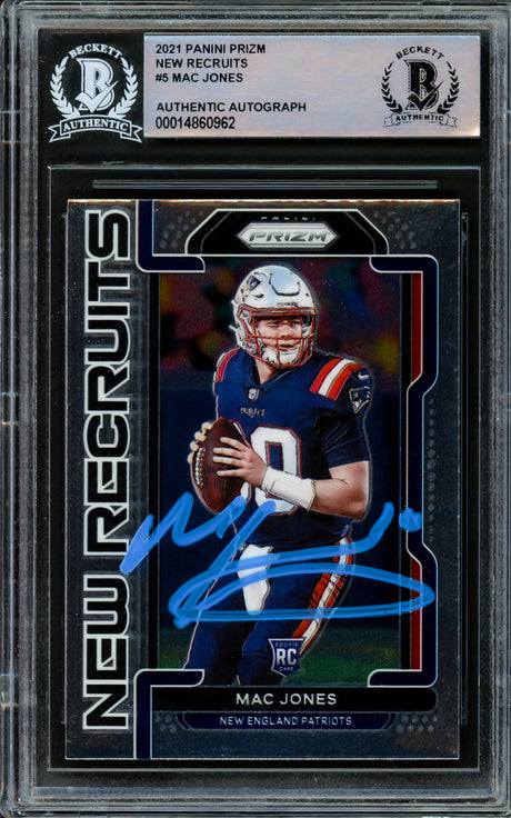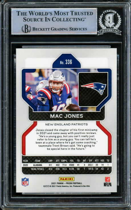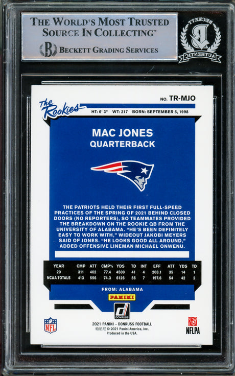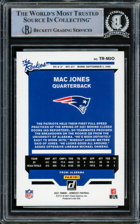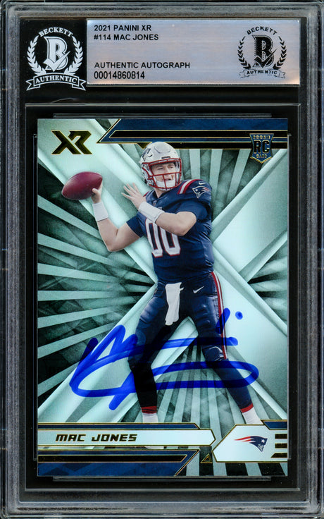 Mac Jones Autographed 2021 Panini XR Rookie Card #114 New England Patriots Beckett BAS #14860814