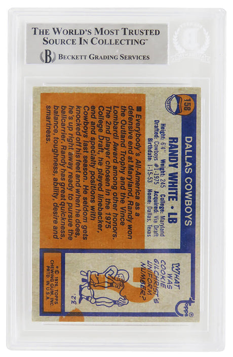 Randy White Signed Dallas Cowboys 1976 Topps Rookie Card #158 w/HOF'94 (Beckett Encapsulated)