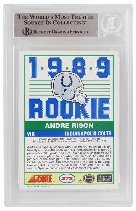 Andre Rison Signed Indianapolis Colts 1989 Score Rookie Card #272 w/Bad Moon (Beckett Encapsulated)