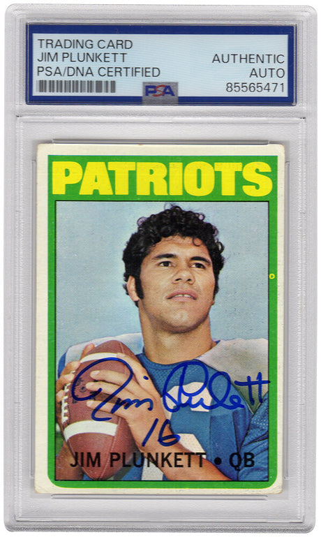Jim Plunkett Signed Patriots 1972 Topps Rookie Football Card #65 - (PSA Encapsulated)