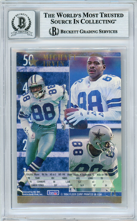 1994 Fleer Ultra #71 Michael Irvin Dallas Cowboys BGS Autograph 10